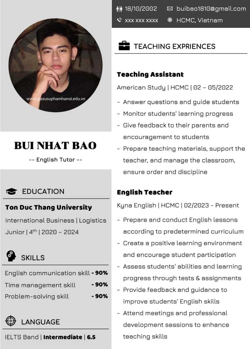 Mẫu CV gia sư cho sinh viên xin việc 01